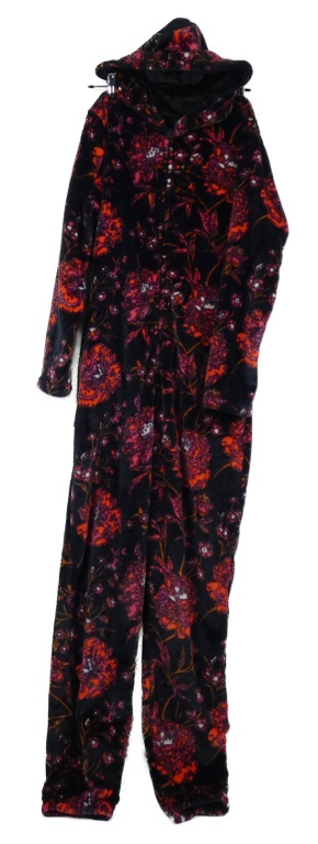 Dámska tmavomodrá plyšová kombinéza s kvetmi a kapucňou Decoy