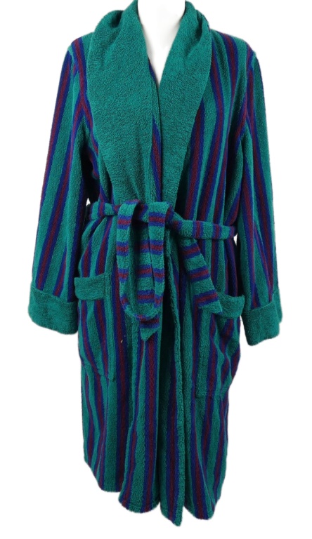 Dámsky zeleno-modro-červený pruhovaný froté župan s opaskom