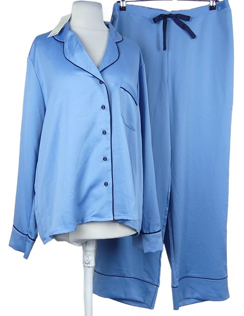 Dámske svetlomodré saténové pyžama s tmavomodrým lemováním George