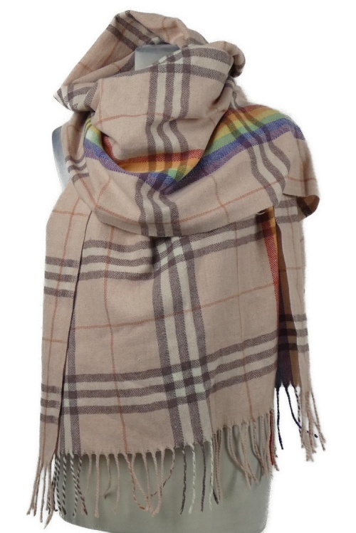 Dámska ružová kockovaná šál s strapcemi