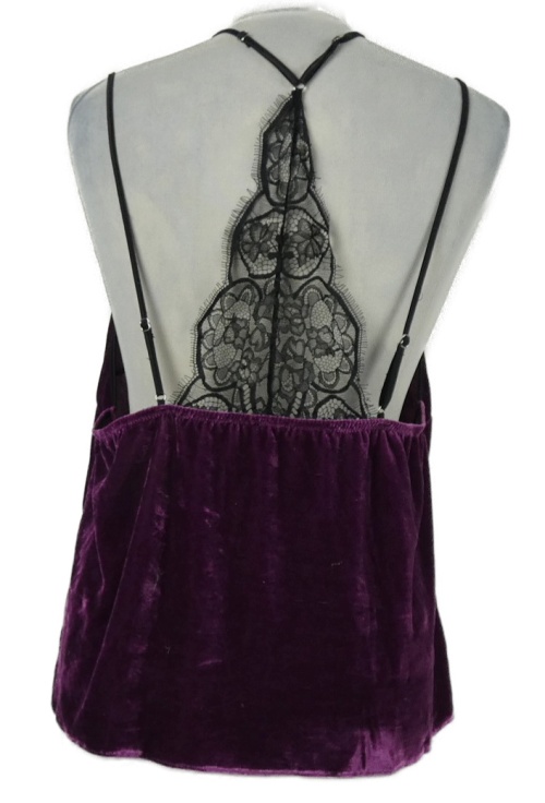 Nové - Dámsky purpurový zamatový top s čiernou čipkou Ann Summers