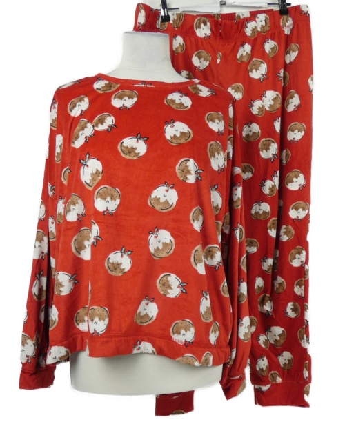 Dámske červené plyšové pyžama s pudinky Dunnes