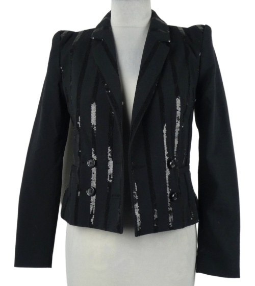 Dámsky čierny crop blejzer s flitrovými pruhmi H&M