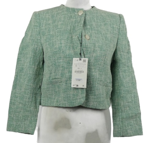 • Nové - Dámský zeleno-bílý melírovaný crop kabátek Zara