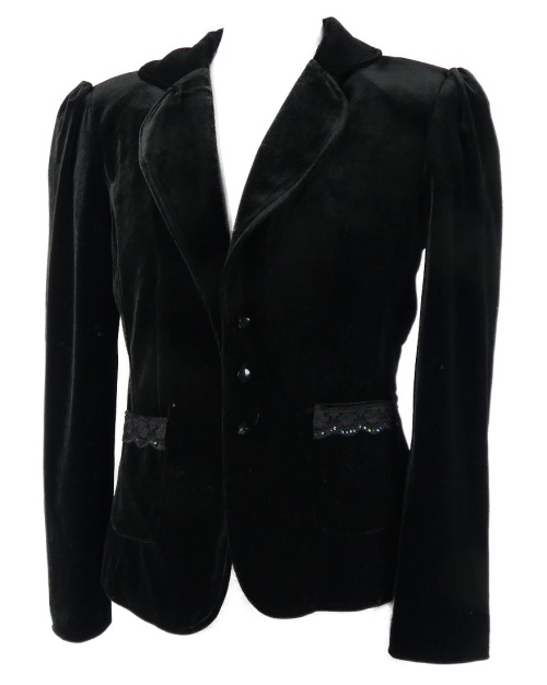 Nové - Dámske čierne zamatové sako s čipkou Jares Ross
