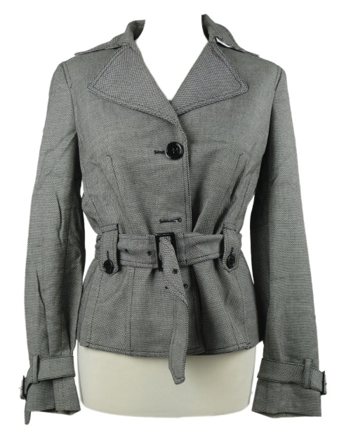 • Dámský černo-bílý vzorovaný vlněný kabátek s opaskom Esprit