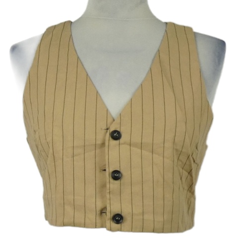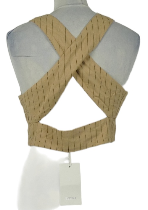 Nové - Dámska béžová prúžkovaná crop ľanová vesta Bershka