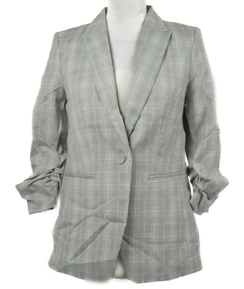 Dámske sivé kockované sako s řasenými rukávy H&M
