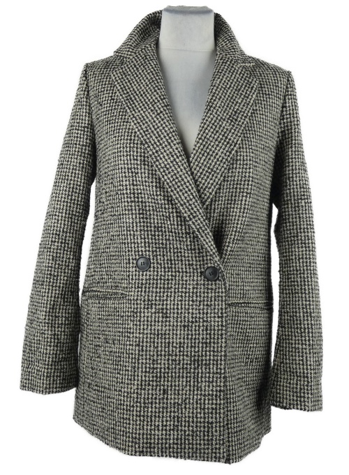 Dámsky čierno-béžový kockovaný vlnený blejzer H&M