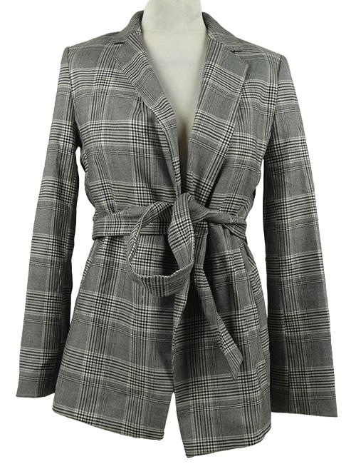 Dámsky čierno-biely kockovaný sakový cardigán s opaskom H&M