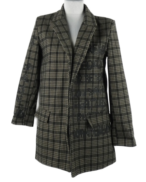 Dámsky čierno-béžový kockovaný flaušový sakový cardigán s nápisom