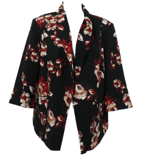 Dámsky čierno-červený kvetovaný sakový cardigán