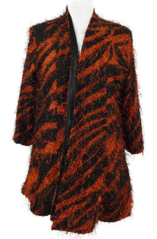 Dámsky červeno-čierny vzorovaný chlpatý cardigán Gerard