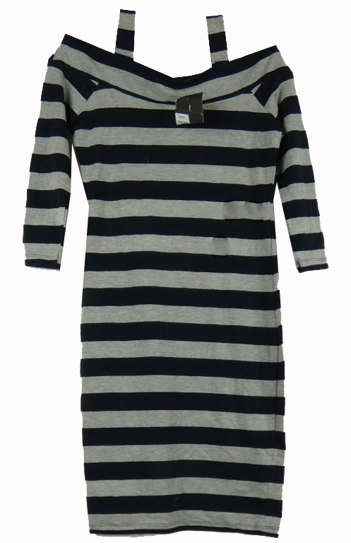Nové - Dámske sivo-čierne pruhované šaty s volnými rameny Primark vel. 32