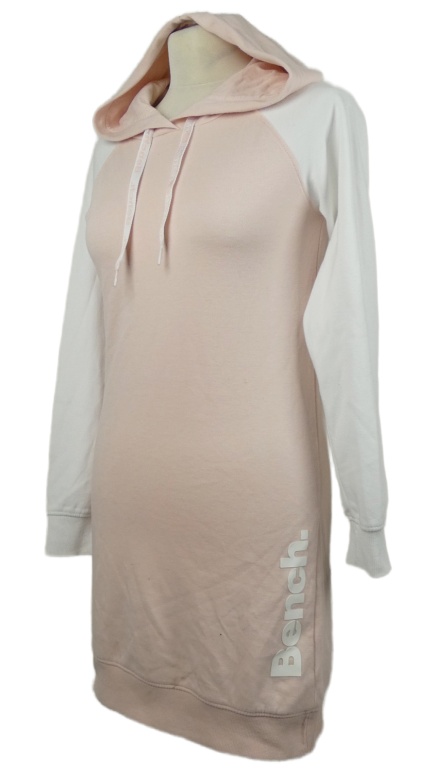 Dámske svetloružová -biele teplákové šaty s logom a kapucňou Bench