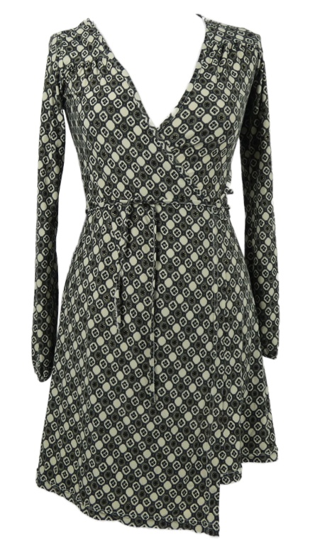 Dámske čierno-smotanové vzorované zavinovací šaty Amisu