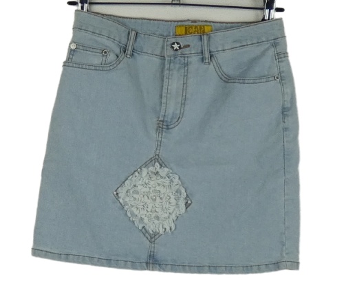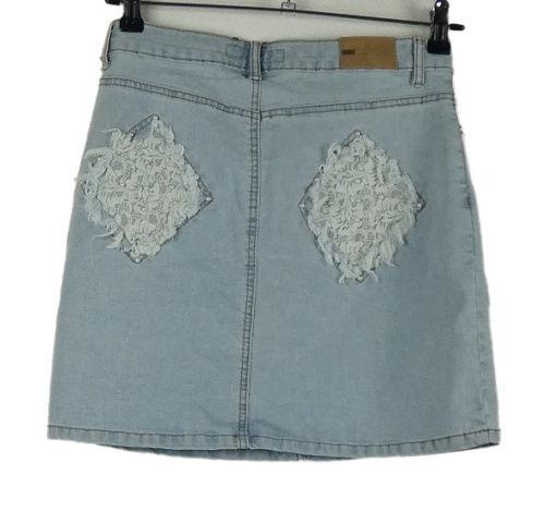 Dámska svetlomodrá rifľová sukňa s čipkou a perlami Ican