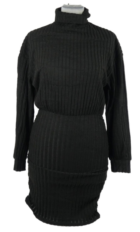 Dámske čierne rebrované šaty s rolákom Shein