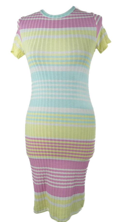 Dámske ružovo-žlto-modré pruhované rebrované šaty Primark
