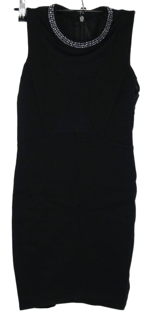 Dámské černé minišaty s tylovým výstřihem a kamienkami