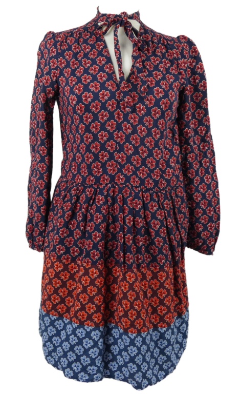 Dámske tmavomodro-červeno-svetlomodré šaty s trojlístky a vázačkou GAP