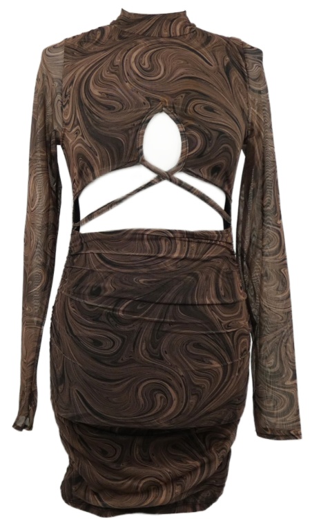 Dámske hnedé vzorované šaty s prestrihom Rebellious