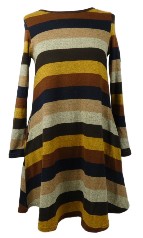 Dámske hnedo-okrovo-tmavomodré pruhované úpletové šaty Apricot