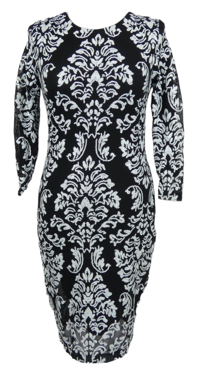 Dámske čierno-biele tylové flitrové vzorované šaty TFNC