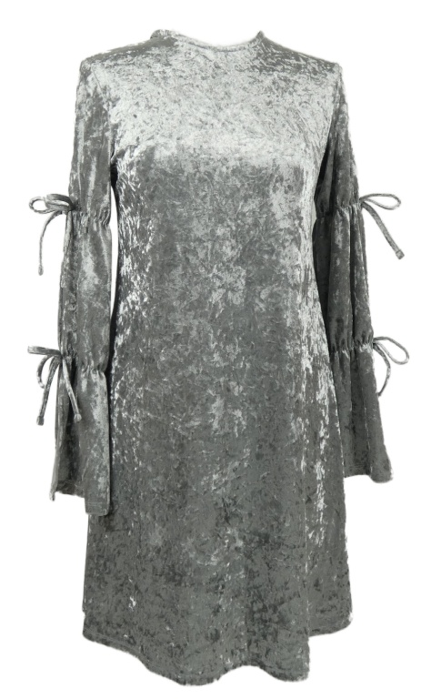 Nové - Dámske sivé zamatové šaty s mašličkami Primark