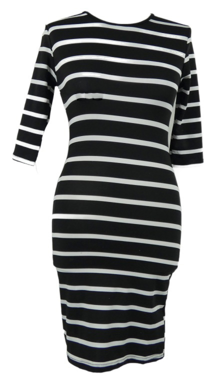 Dámske čierno-biele pruhované elastické šaty