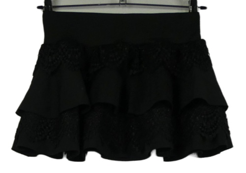 Dámska čierna sukňa s volánikmi a čipkou