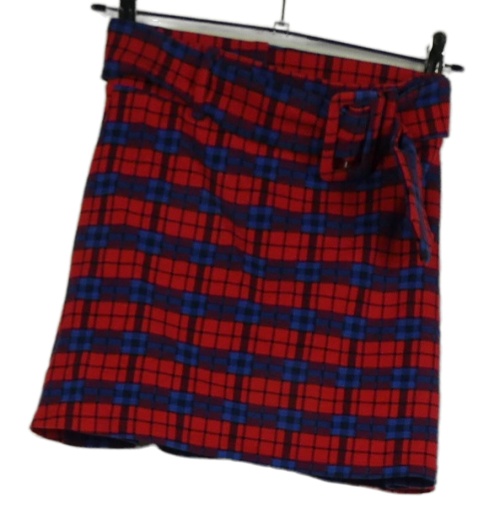 Dámska červeno-modrá kockovaná sukňa s opaskom C&A