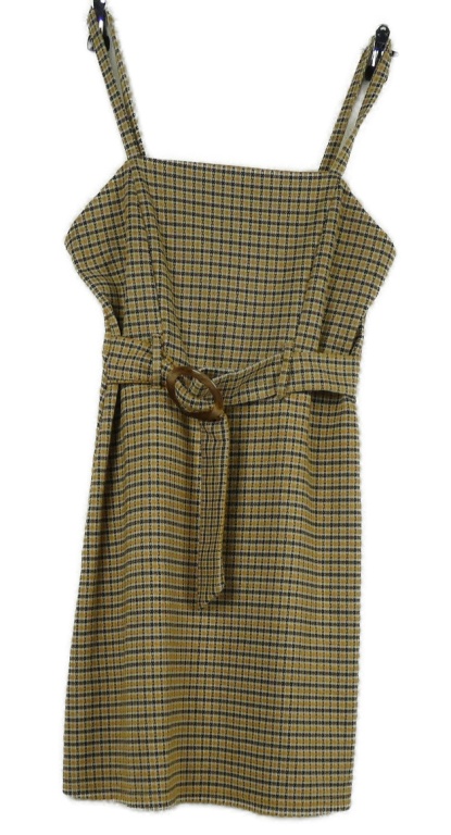 Dámske okrovo-sivé kockované šaty s opaskom Primark