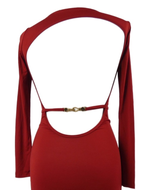 Dámske červené midi elastické šaty s volnými zády