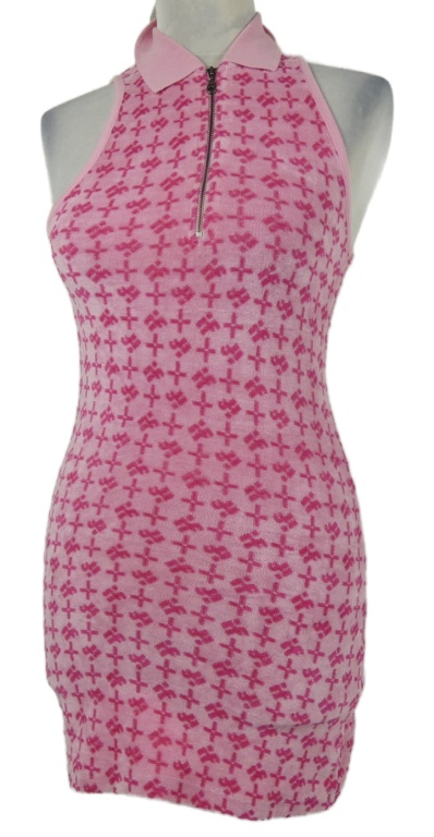 Nové - Dámské růžové vzorované sametové minišaty s golierikom Iets Frans