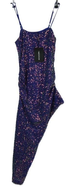 Nové - Dámske modré flitrové asymetrické šaty PrettyLittle Thing