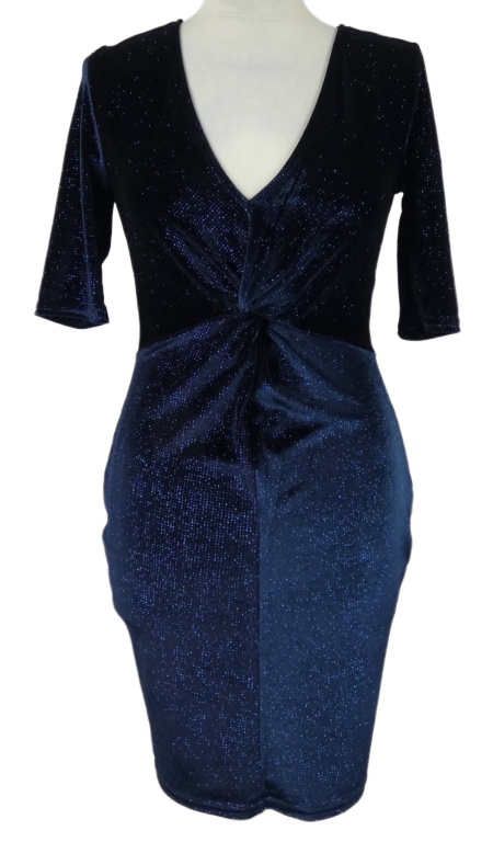 Dámske tmavomodré trblietavé zamatové šaty