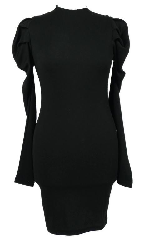 Dámske čierne rebrované šaty s nabíranými rukávy Shein