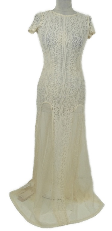 Nové - Dámske smotanové krajkovo/tylové dlhé šaty Shein