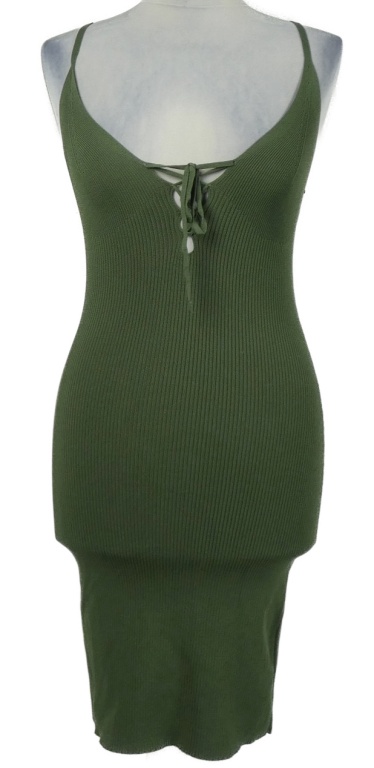 Dámské khaki žebrované pletené minišaty so šnurovaním Bershka