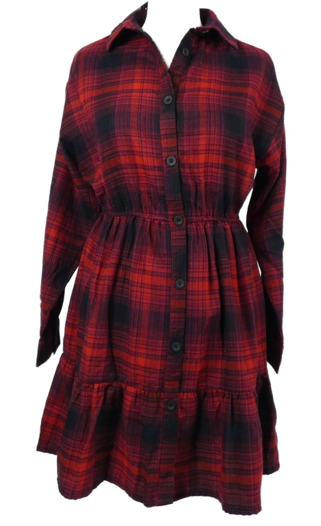 Nové - Dámske červeno-tmavomodré kockované košeľové šaty Primark