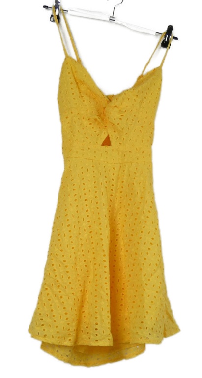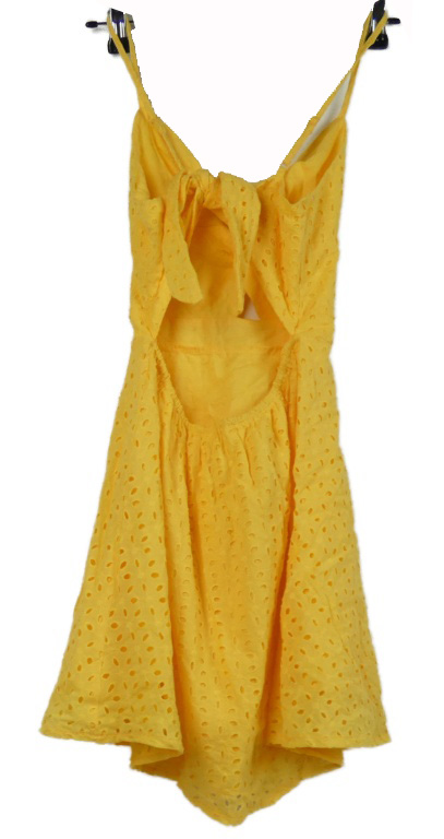 Dámske okrové madeirové plátenné šaty s mašlou Shein