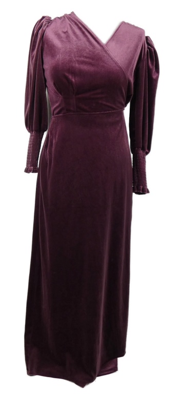 Nové - Dámske purpurové zamatové zavinovací dlhé šaty Gallery