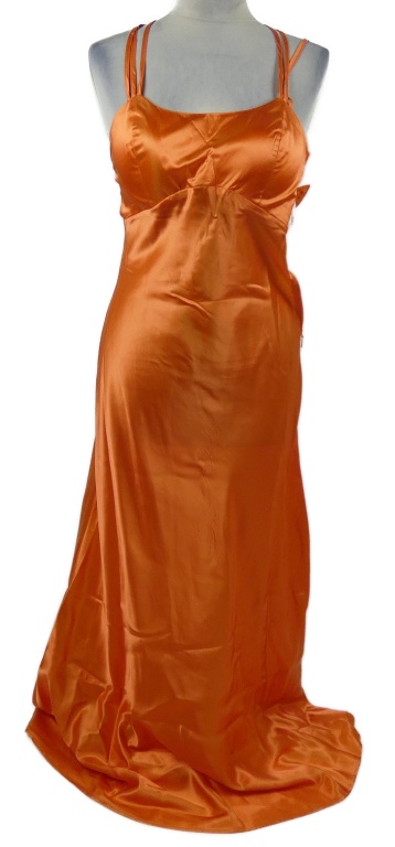 Dámske oranžové saténové plesové dlhé šaty Vera Mont