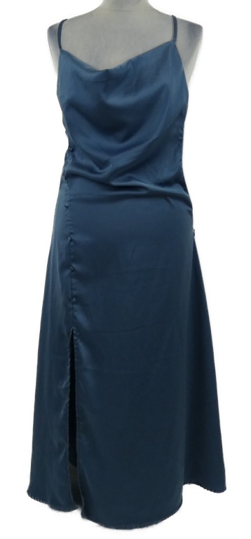 Dámske modrošedé saténové midi spoločenské šaty s vodou Cider