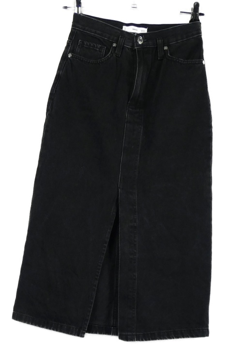 Dámska čierna rifľová púzdrová midi sukňa s rozparkem Mango