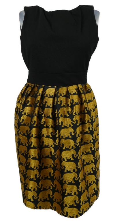 Dámske čierno-okrové šaty so sloníky s opaskom Goldkid