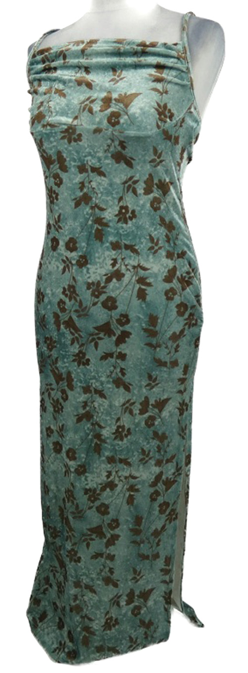 Dámske svetlomodré kvietkovane zamatové midi šaty