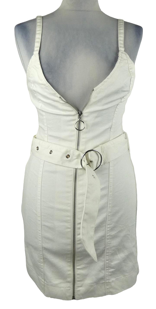 Dámské bílé riflové minišaty s opaskom Bershka