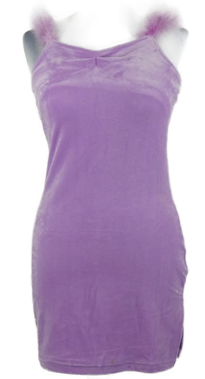 Dámské lila sametové minišaty s peříčkovými ramínky